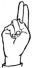 На ћирилици написано БУДИМИР ВУКОСАВЉЕВИЋ састоји се из 19 слова [?]. Исписано ћириличном једноручном азбуком за глувонеме: